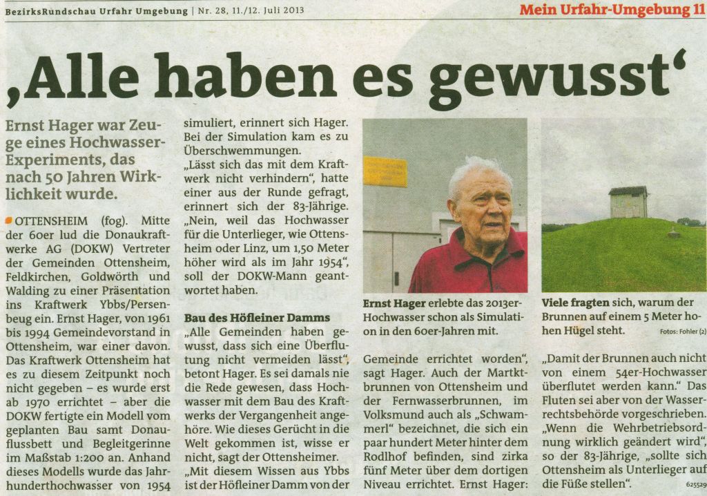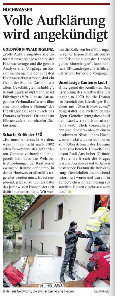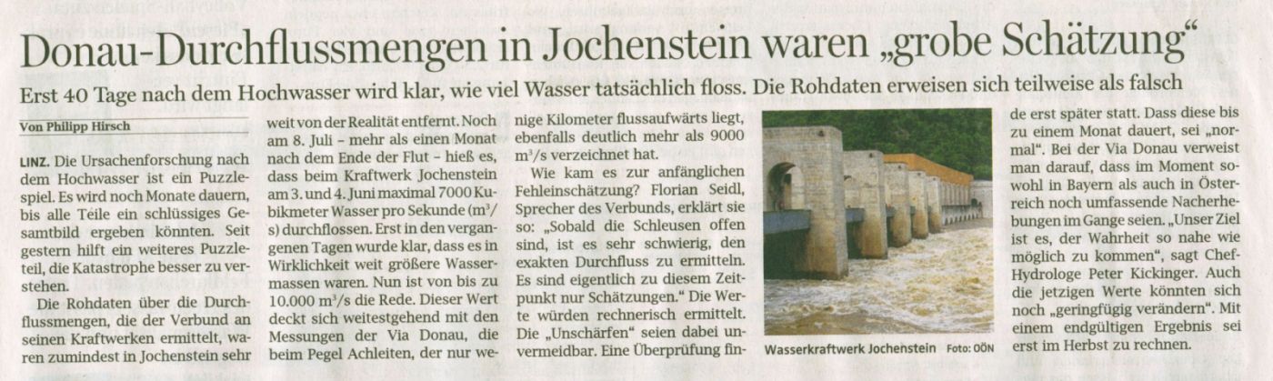 Kraftwerk Ottensheim während Flutwelle nicht besetzt (OÖN vom 4.7.2013