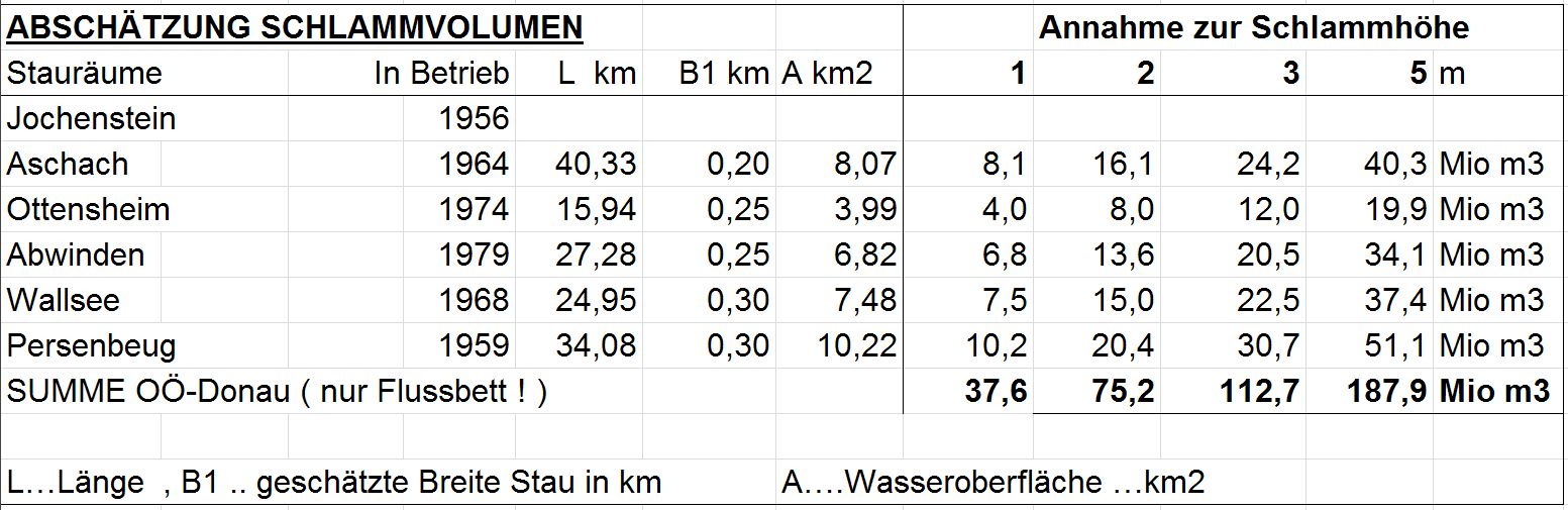 An der OÖ Donau liegen die ältesten Stauraume ( siehe Tabelle ) und nur die ebenfalls stark verschlammten Staus am Unteren Inn sind älter.