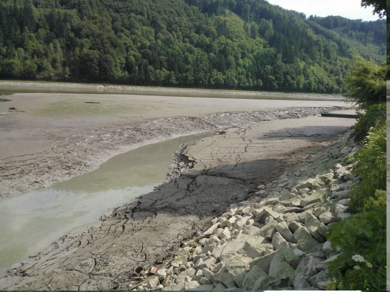 Die 2 Fotos aus dem Stauraum Aschach ( Untermühl ca 6 km oberhalb Kraftwerk ) dokumentieren eindeutig die extreme Verschlammung des Flussbetts.